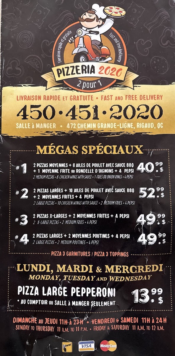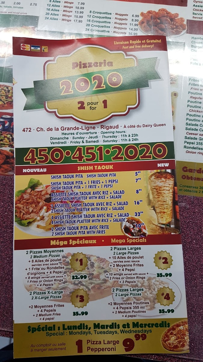 Introducing the menu at Pizzeria 2020 is a culinary delight that captures the essence of Italian cuisine right in Rigaud. Nestled at 472 Chem. de la Grande-Ligne, this charming pizzeria offers a variety of options that cater to every palate. From their signature pizzas, including the beloved Santa Fe, to mega specials and sous marins, there’s something for everyone. Customers rave about the light, airy crust and the perfectly seasoned tomato sauce, which keeps them returning for more.